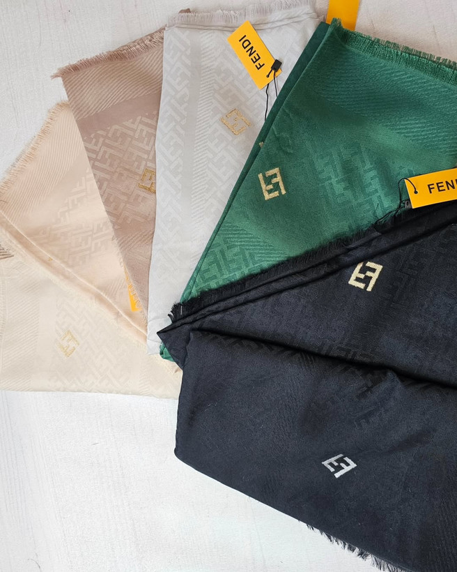 روسری نخ ژاکارد وارداتی طرح فندی قواره 140دور ریش