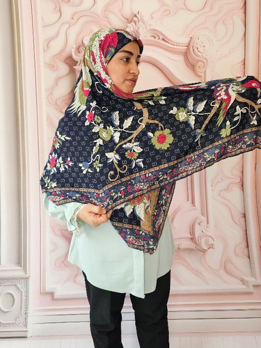 روسری کشمیر پاییزه طرح ورساچه دور دوخت قواره 140